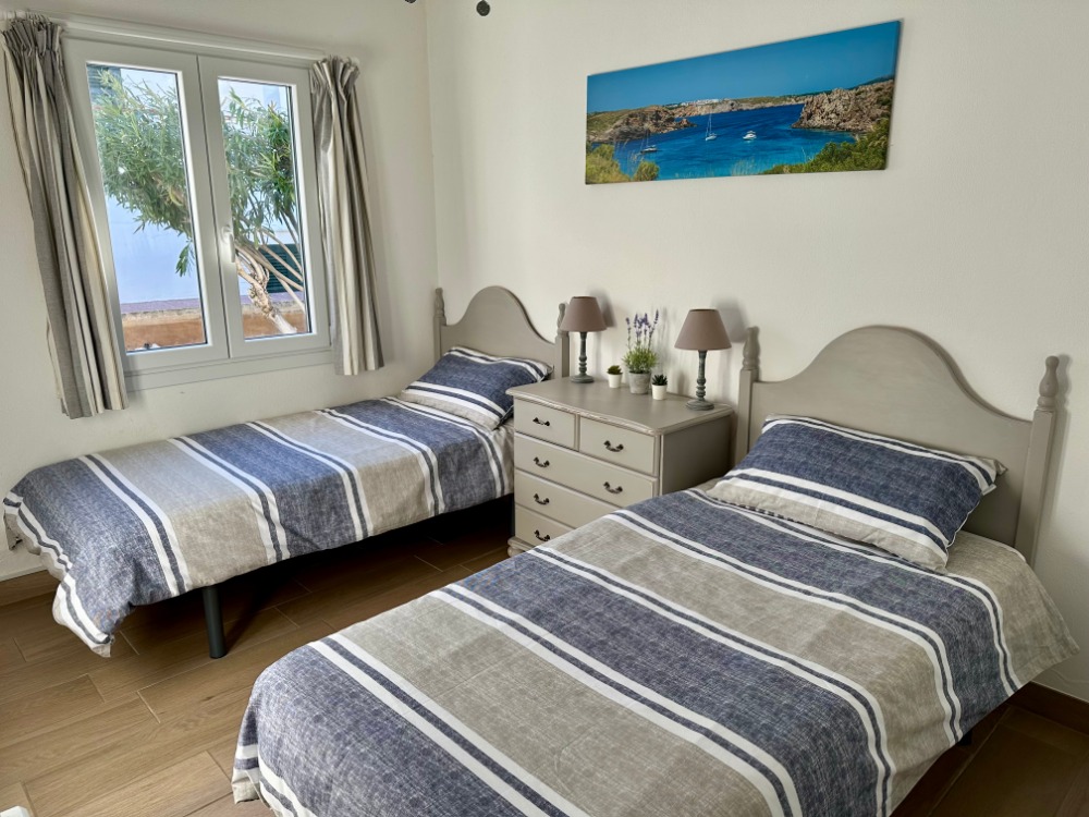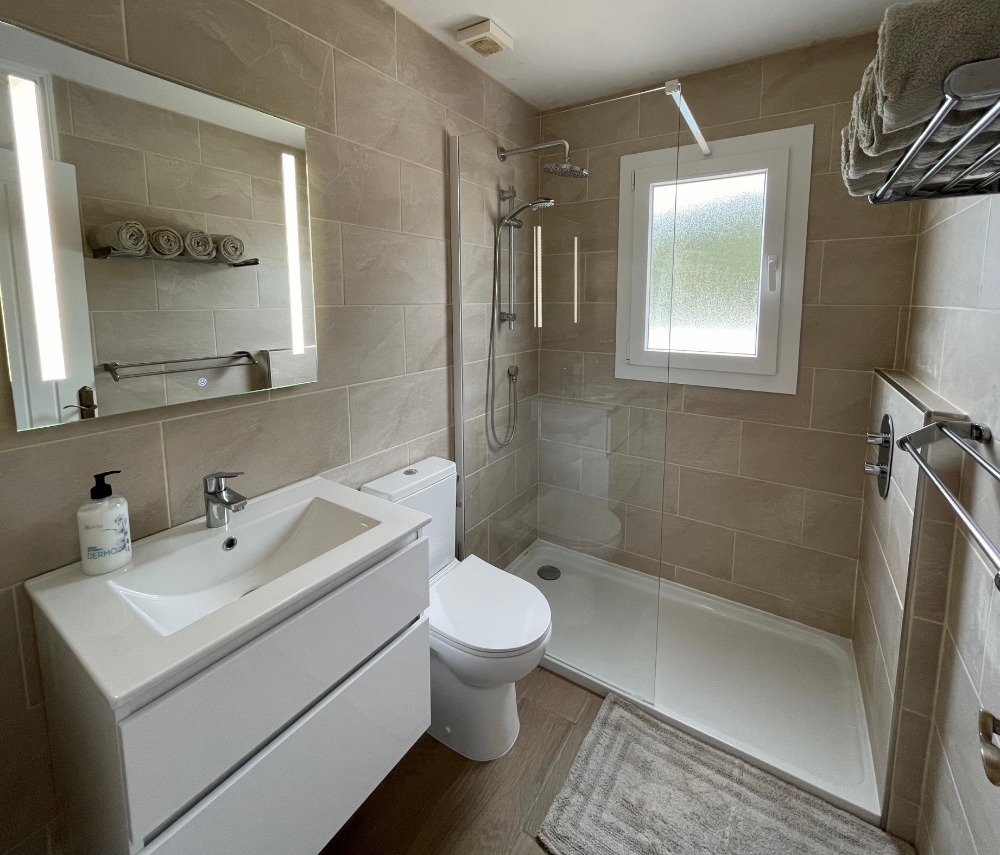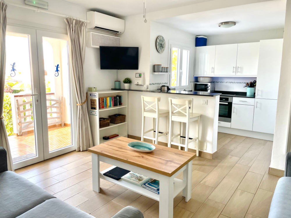 Our villa has three bedrooms, two doubles and one twin room. A bathroom with a walk-in shower, a fully equipped kitchen with oven, hob & microwave etc.